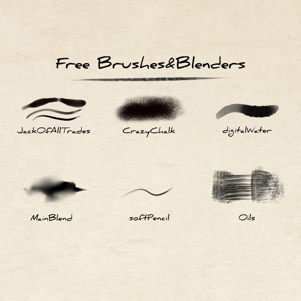 This is the free brushes that I've created as part of my Brushset with lifetime updates. There is a few simple, but useful brushes that I'm using everyday in almost every drawing. Hope you will love it :3